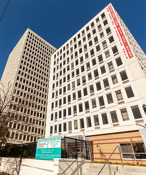 World Exchange Plaza is Ottawa’s landmark, carbon-resilient office complex with renewed common areas, wayfinding, destination-dispatch upgrades, and high accessibility standards for a modern tenant and visitor experience.